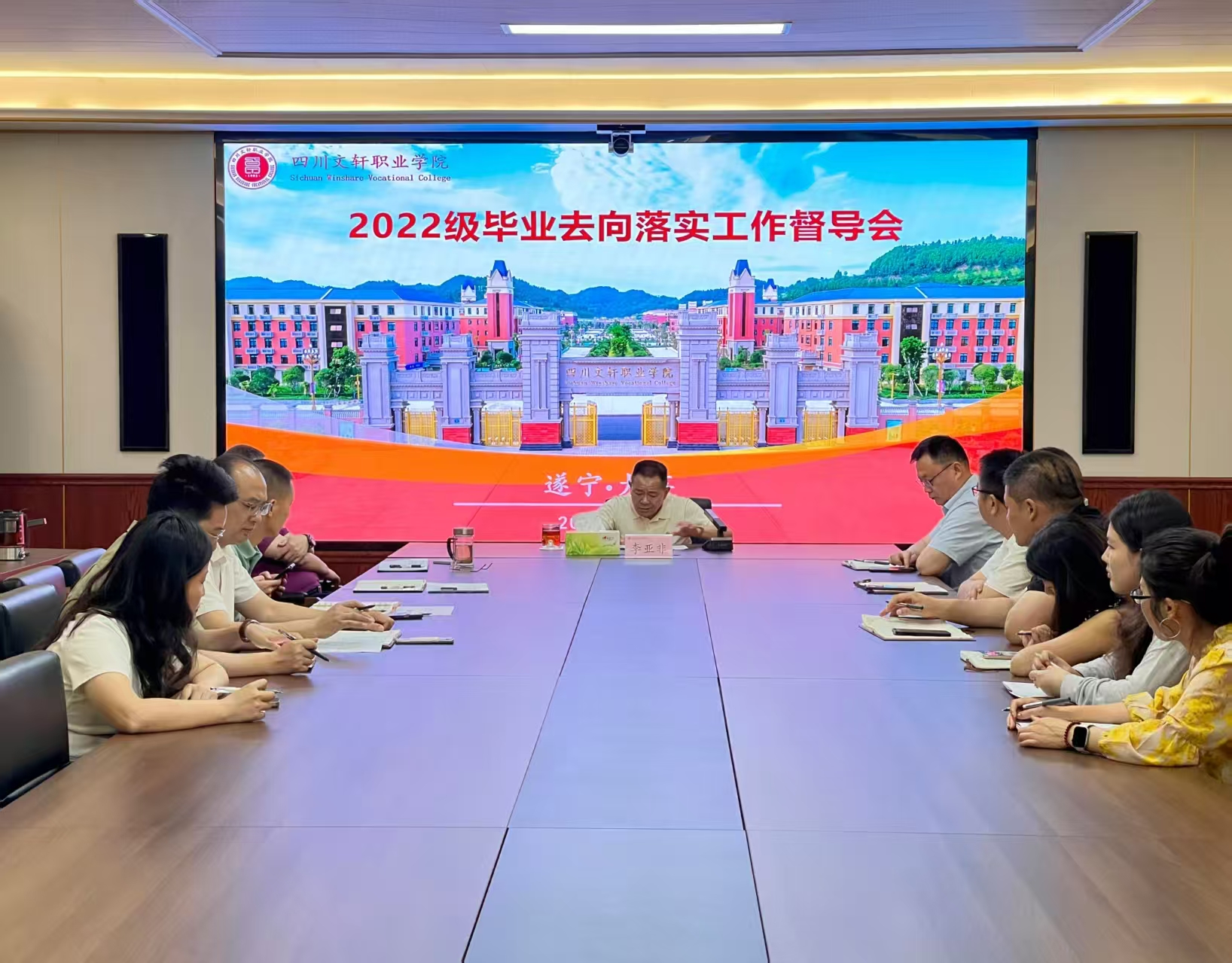 为进一步推动2025届毕业生就业工作,提升就业质量,2025年5月29日上午,学校召开了“2025届毕业生就业工作督导会”。会议由学校理事长校长李亚非先生主持,学校党务副校长李军,副校长、遂宁校区校长周勇,副校长张杳,遂宁校区副校长何波,就业处相关负责人以及就业工作落实靠后二级学院领导参加了会议。