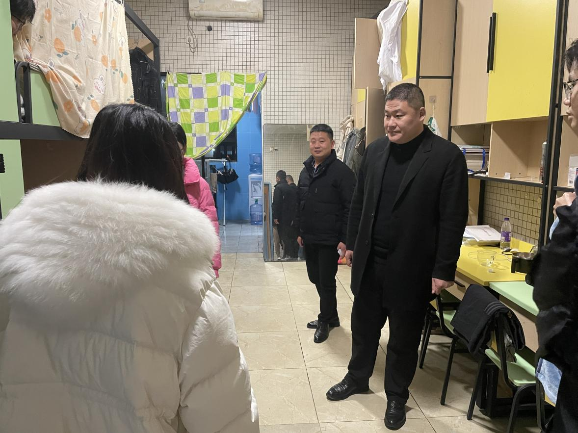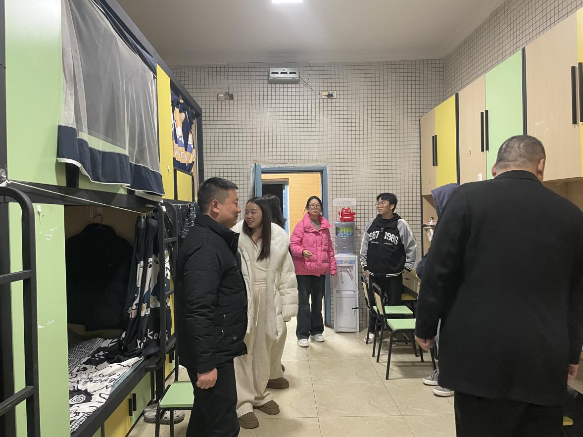 孙燕龙院长、赵双副院长、综合办主任唐瑶及全体辅导员走访了多个学生寝室亲切询问每位学生的学习和生活情况听取他们的意见和建议,并解答他们的问题鼓励学生认真复习积极应考,保持乐观心态