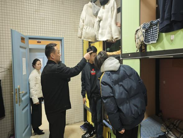 在走访过程中,师生进行了深入的交谈。秦建宏详细询问了学生临近期末遇到的疑惑和困难,认真倾听学生们的心声和诉求,并给予针对性的建议和帮助。同时,辅导员还化身“安全卫士”,认真检查宿舍内的电器设备、消防器材以及门窗状况,对存在的安全隐患进行详细的记录,并及时安排整改措施、现场向学生普及防火防盗知识。张雷强调,冬天是事故多发的季节,务必要注意用电防火安全,离开宿舍关好门窗,杜绝使用违规电器,确保自身与他人的生命财产安全。