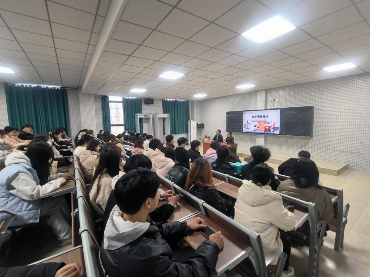 副院长陈国辉讲第一:学生干部角色认知与职责明:学生干部的角色定位(服务者、沟通桥梁者、榜样示范者),如何平衡学业与工作、处理同学矛盾等。第二:团队协作与凝聚能力建设:团队分工原则(扬长避短、责任到人;冲突解决方法(换位思考、主动沟通)。第三:每位干部善于总结,行动计划。