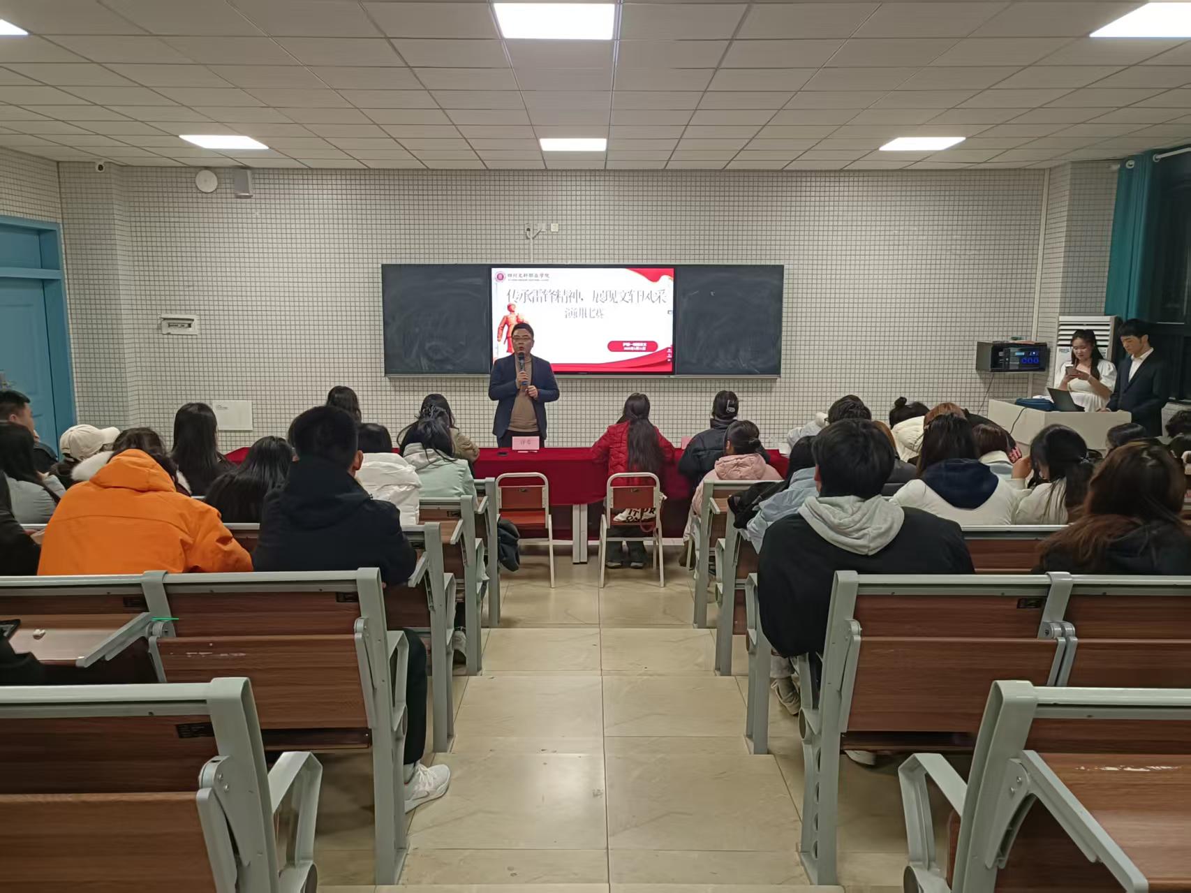 为弘扬雷锋精神,引导大学生树立正确的价值观,四川文轩职业学院(遂宁校区)护理一院举办了 “传承雷锋精神,展现文轩风采” 演讲比赛。