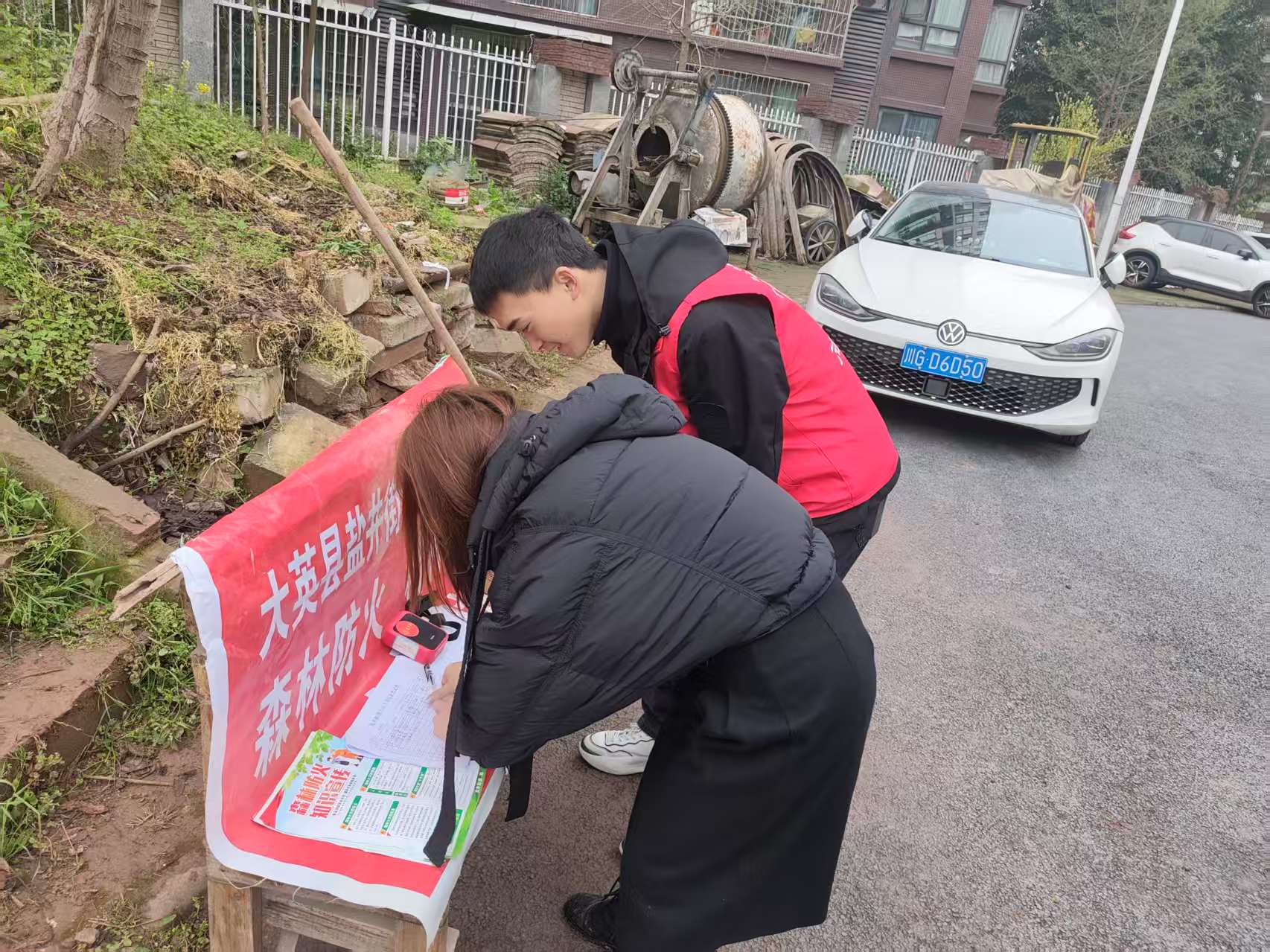 为积极响应森林草原防灭火号召,引导社区居民树立文明祭祖新风尚,2025年4月1日,汽车学院志愿实践部成员走进大英县转轮社区,参与“森林草原防灭火,爱在社区”——清明祭祖文明宣传志愿活动。