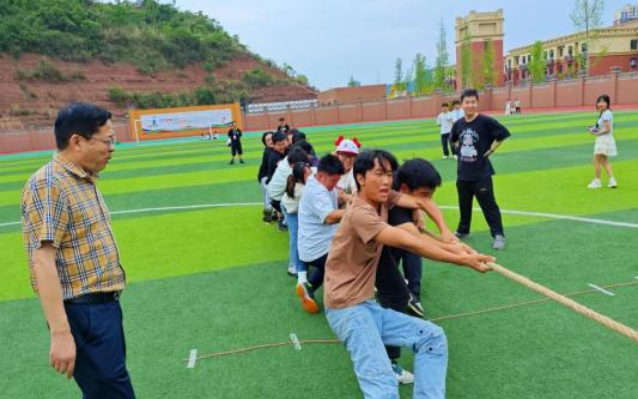 总决赛现场,经过前几日的激烈比赛四支最强队伍从中脱颖而出,他们分别是2024级11 班、2023级2班、2023级4班、2023级13班。在气氛紧张的操场上,随着裁判组的哨声响起,双方队员们紧握长绳,力量瞬间爆发,象征胜利的红绸在中心线上方激烈地左右拉锯。同时同学们的助威声、绳索的瞬间紧绷,交织成了赛场上最热血澎湃的青春乐章。