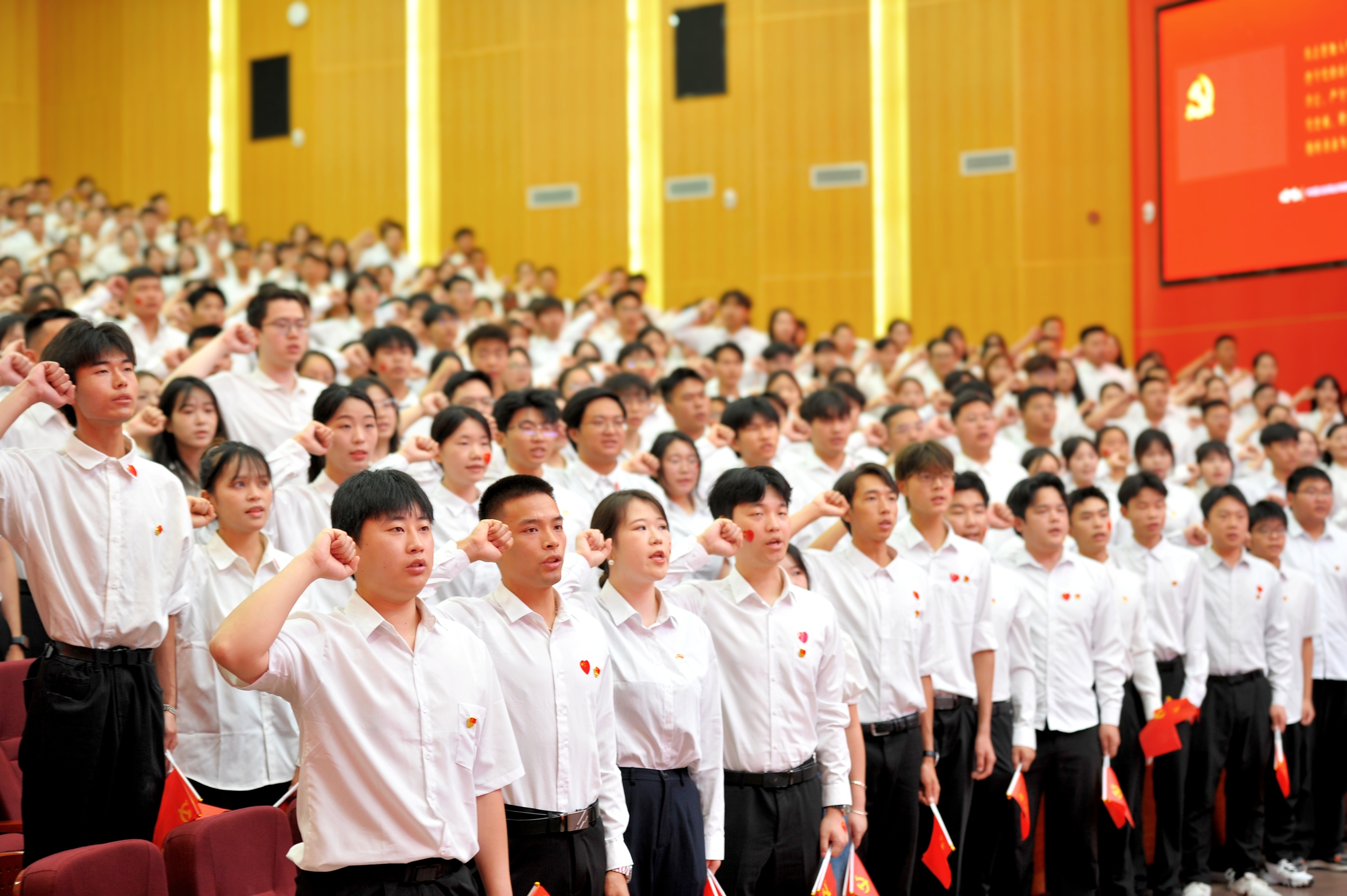 在鲜红的党旗下,2025年春季学期发展的178名预备党员面向党旗庄严宣誓,党员同志重温入党誓词。李军宣读学校党委《关于表彰2025年优秀共产党员、优秀党务工作者和先进基层党组织的决定》,对马克思主义学院党总支等6个先进基层党组织、龚娅琴等10名优秀党务工作者和张春雷等31名优秀共产党员予以表彰。