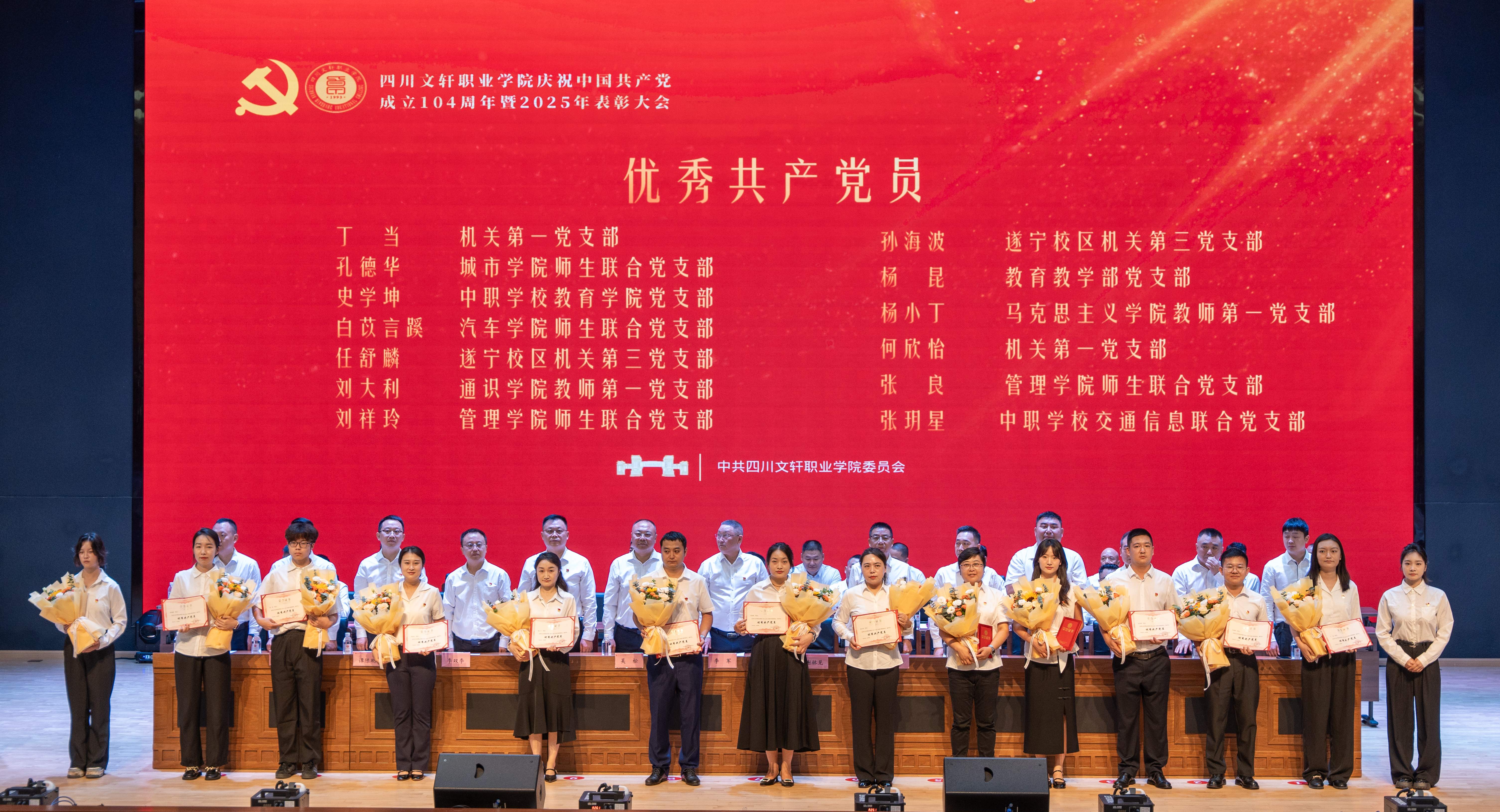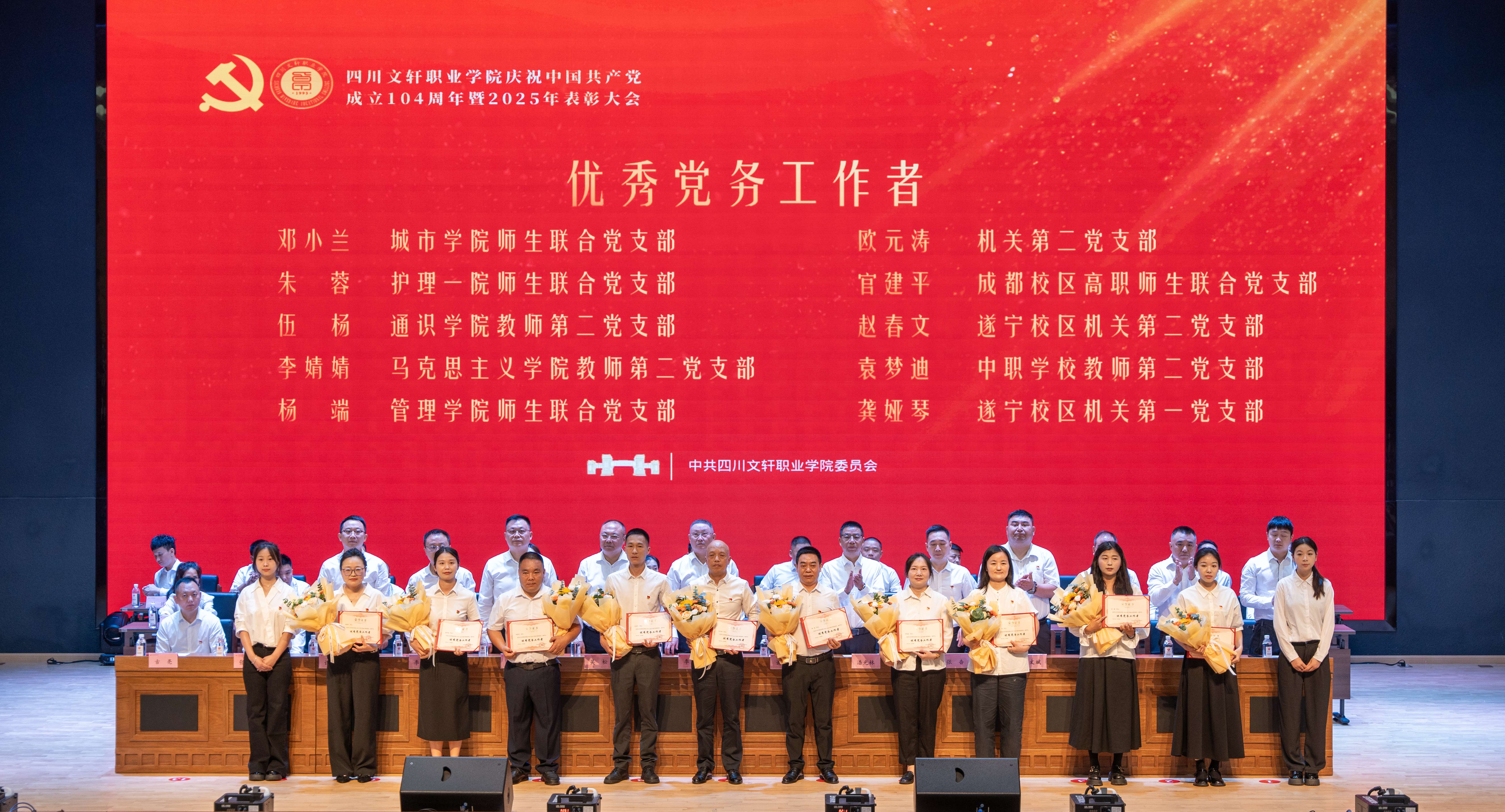 6月19日,学校在遂宁校区学术中心隆重举行庆祝中国共产党成立104周年暨“两优一先”表彰大会。党委副书记、副校长谢林见主持大会,全体党员齐聚一堂,庆祝党的生日,党委副书记、常务副校长李军宣读表彰决定并讲话。