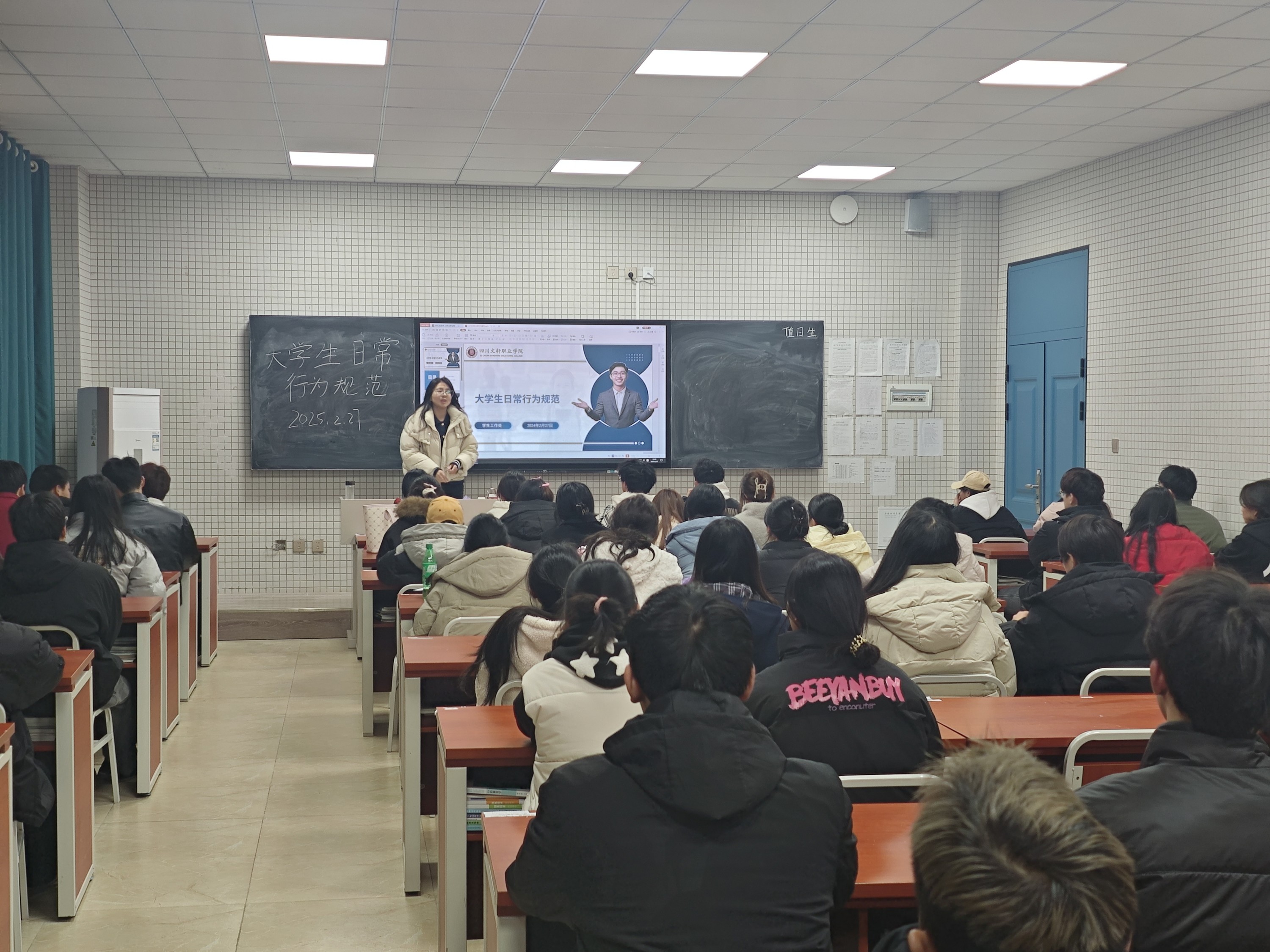 为加强学生行为规范教育,营造文明和谐的校园氛围,健康学院于2025年2月27日19:00开展“大学生日常行为规范”主题班会。