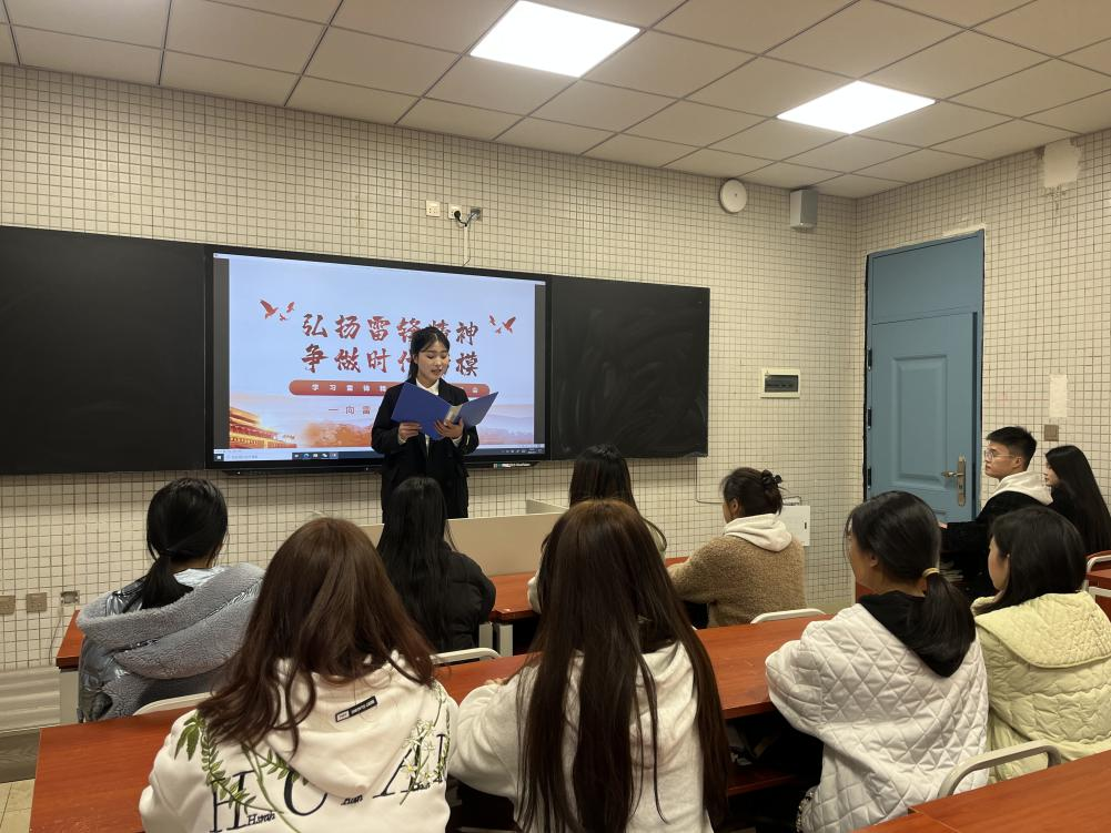 随后“继承雷锋精神,讲述雷锋故事” 环节中,各班学生代表走上讲台,分享自己身边的 “雷锋故事”。有的讲述了社区志愿者默默为孤寡老人服务的感人瞬间;有的分享了同学在生活、学习中互帮互助、共同进步的事迹;还有的提到了陌生人之间的一次善意之举……