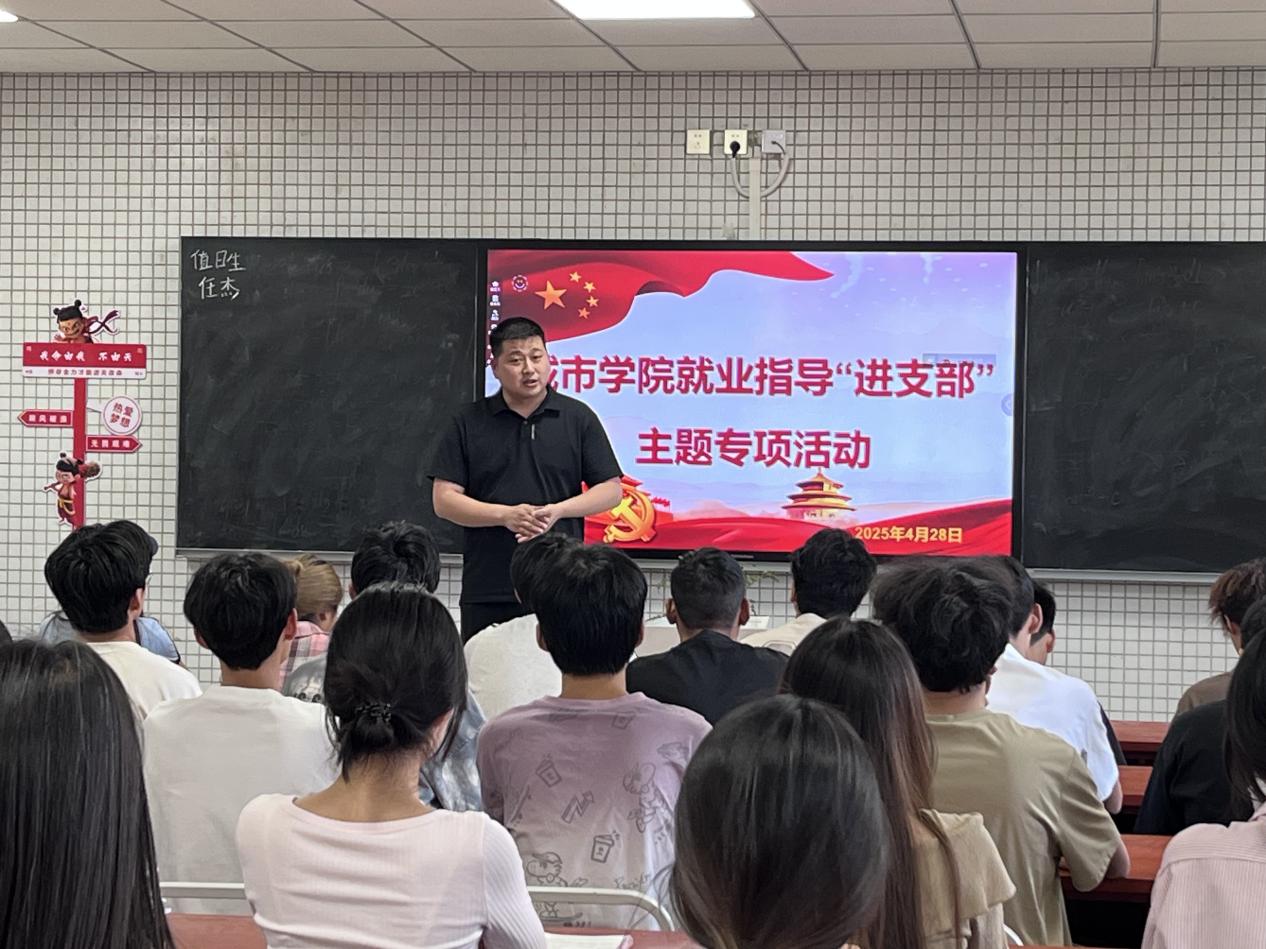 为充分发挥基层党组织在就业工作中的战斗堡垒作用,深化“党建+就业”融合机制,4月28日下午,城市学院联合党支部在2教503开展就业指导“进支部”主题专项活动。学院师生联合党支部书记谢亮、组织委员邓小兰、毕业生党员代表、部分积极分子共计50余人参与,以党建引领凝聚就业合力,助力毕业生精准择业。