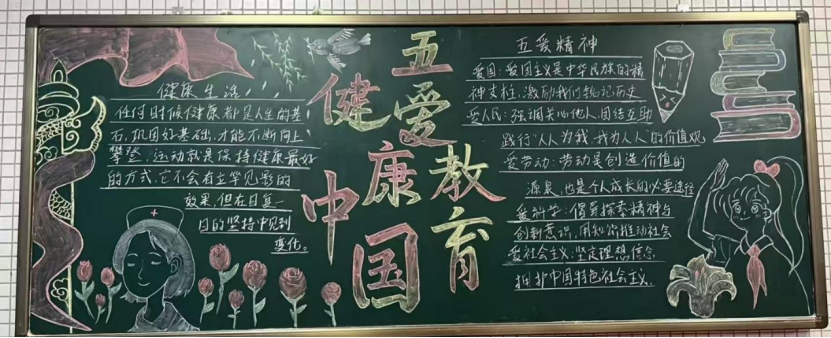 活动中,各班级巧妙融合思想教育与艺术表达,以缤纷色彩与创意构思,生动展现新时代青年的活力担当。一块块图文并茂、主题鲜明的黑板报,不仅展现了合理的色彩搭配与创新巧思,更让学生在创作过程中,深化对“五爱”精神和健康理念的理解。