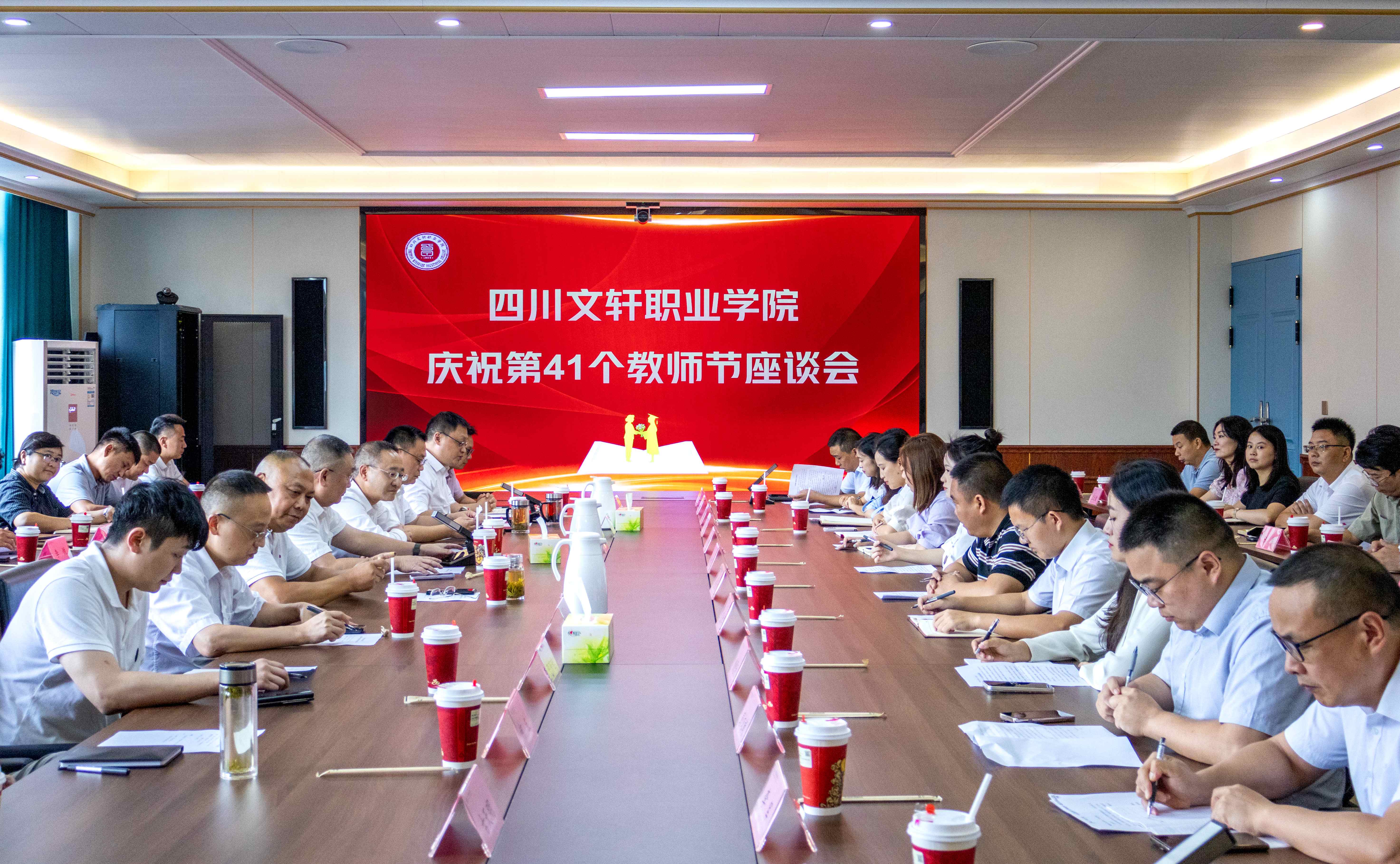 9 月 10 日,学校在遂宁校区308会议室召开庆祝第41个教师节座谈会。校领导和来自教育教学、管理服务和后勤保障一线的教职工代表齐聚一堂,围绕 “弘扬教育家精神,锻造工匠之师”主题,共话立德树人使命,分享教书育人故事,擘画学校发展未来。会议由党委副书记谢林见主持,会场气氛庄重而热烈。