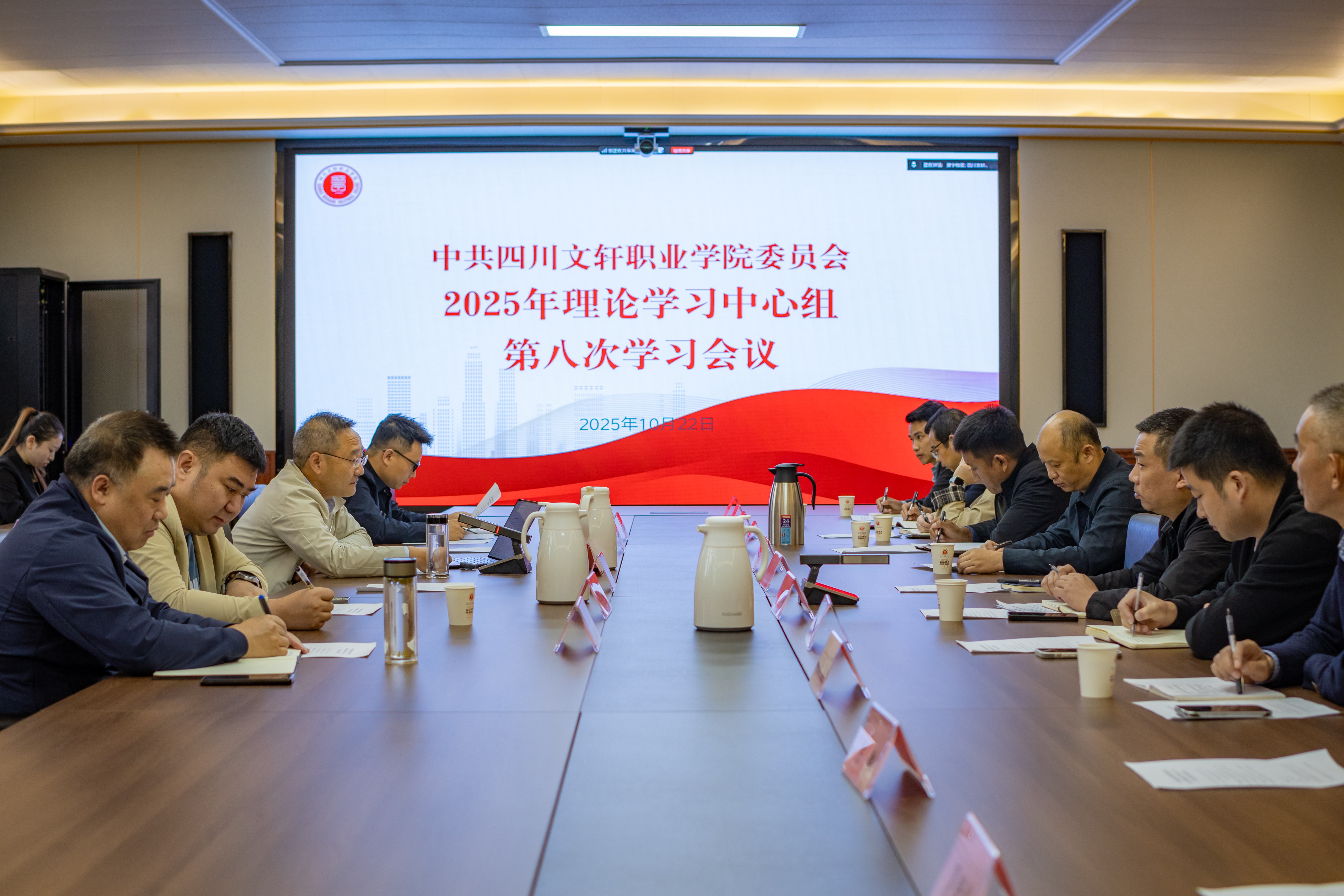 10月22日,学校党委召开理论学习中心组(扩大)第八次学习会议,专题学习《教育强国建设实施纲要(2025-2035年)》《教育强省建设规划纲要(2025-2035年)》和《高等职业学校办学能力评价实施方案(2025-2030年)》等文件,围绕如何提升学校办学能力、加强专业建设与课程改革、深化产教融合与校企合作,以及具体应对办学能力评价的挑战与机遇展开交流研讨和发言。党委书记余文盛主持学习会,党委委员、校领导、各党总支书记及副处级以上干部参加集中学习。